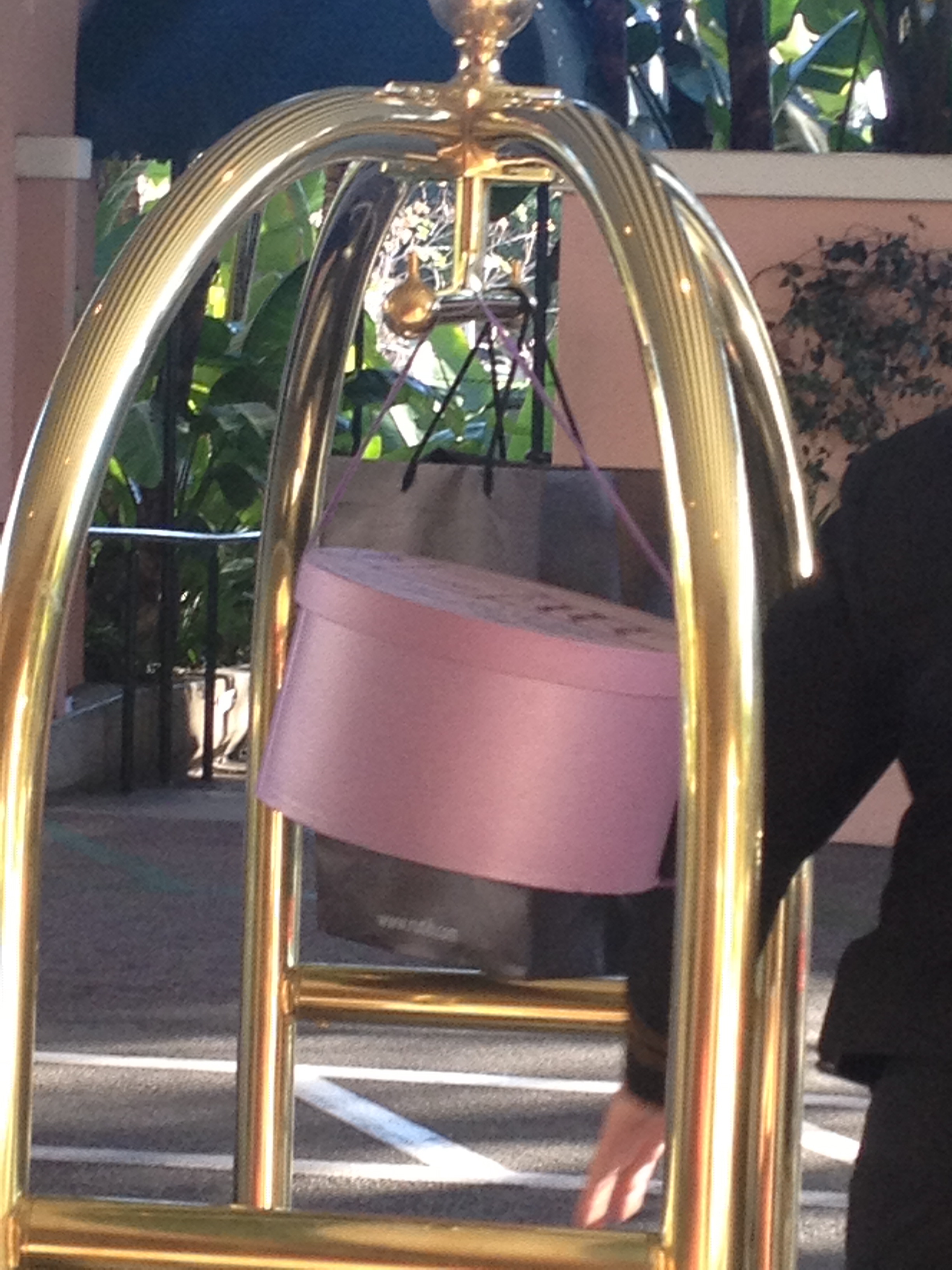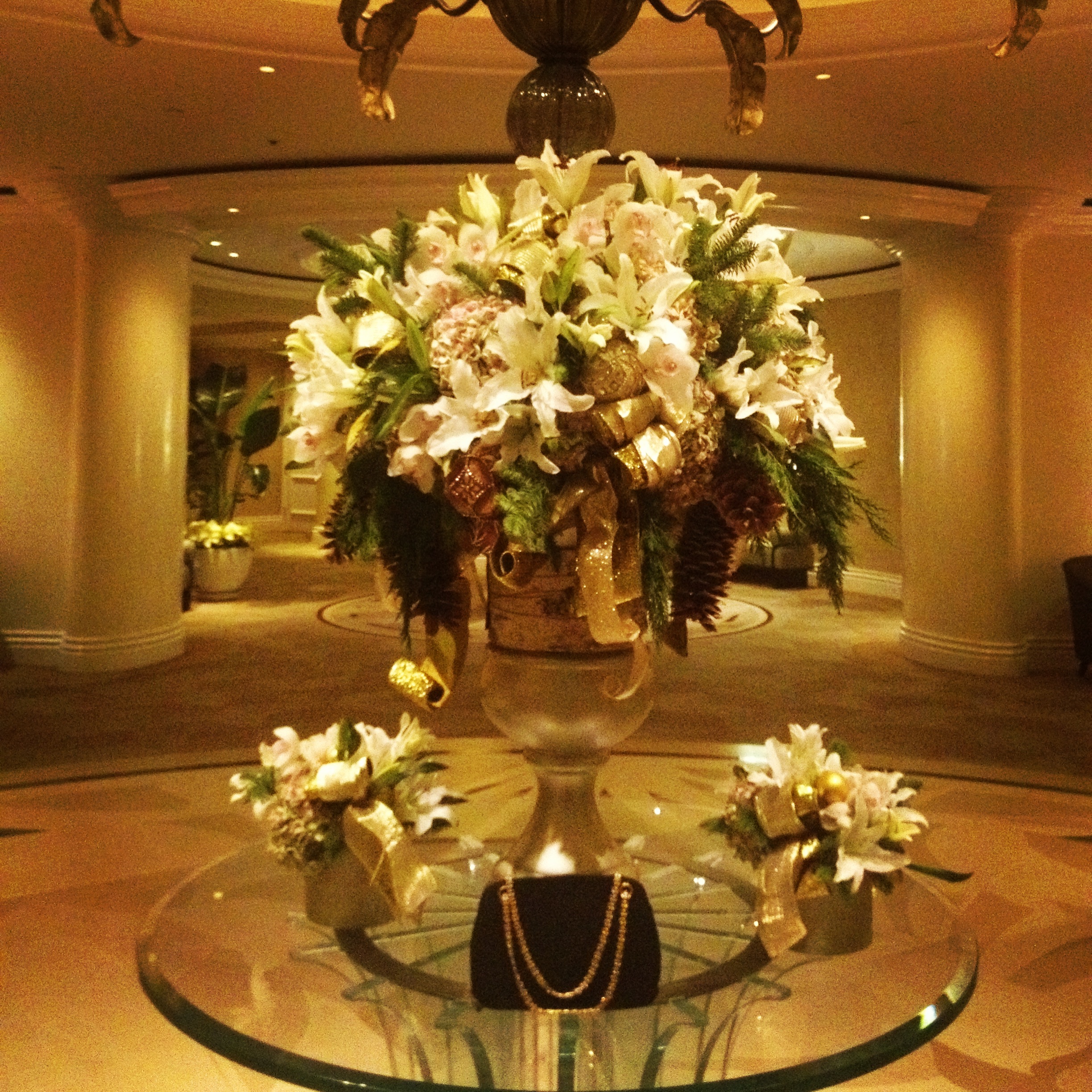 It was just so lovely to be back at The Beverly Hills Hotel after all of these years! I am relieved to discover that the glamourous decor is just as I remembered, and that the Christmas decorations in the lobby were elegant and tasteful. You just never know when one of those horrid faux snow trees might be on display! I must admit, I giggled with glee as we strolled up the red carpet and into the lobby, I do love a gorgeous property!